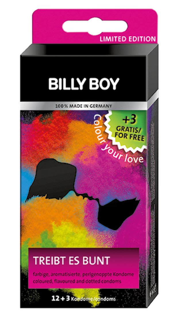 Drei, zwei, eins: Farbrausch! Unter dem Motto „Treibt es bunt“ ist BILLY BOY diesen Sommer auf Holi Colour Festivals in ganz Deutschland unterwegs. Dies zum Anlass nehmend verlosen wir 10 x 1 limitierte Billy Boy „Treibt es bunt“ Aktionspackungen inklusive 12 aromatisierten und farbigen sowie drei zusätzlichen perlgenoppten Kondomen.